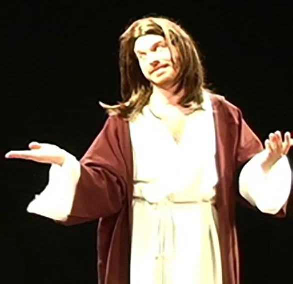 “The Sermon in the Mountains” is not my first time writing for Jesus. Here’s the divine Corey Moosa in the role, from Burning Bush: A Faith-Based Musical (2005),written by Amanda Sisk and me.